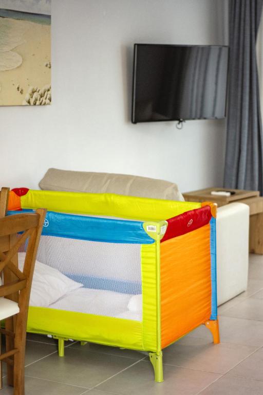Os hóspedes de Robolla Beach Aparthotel podem usufruir de um terraço, assim como de um salão partilhado.