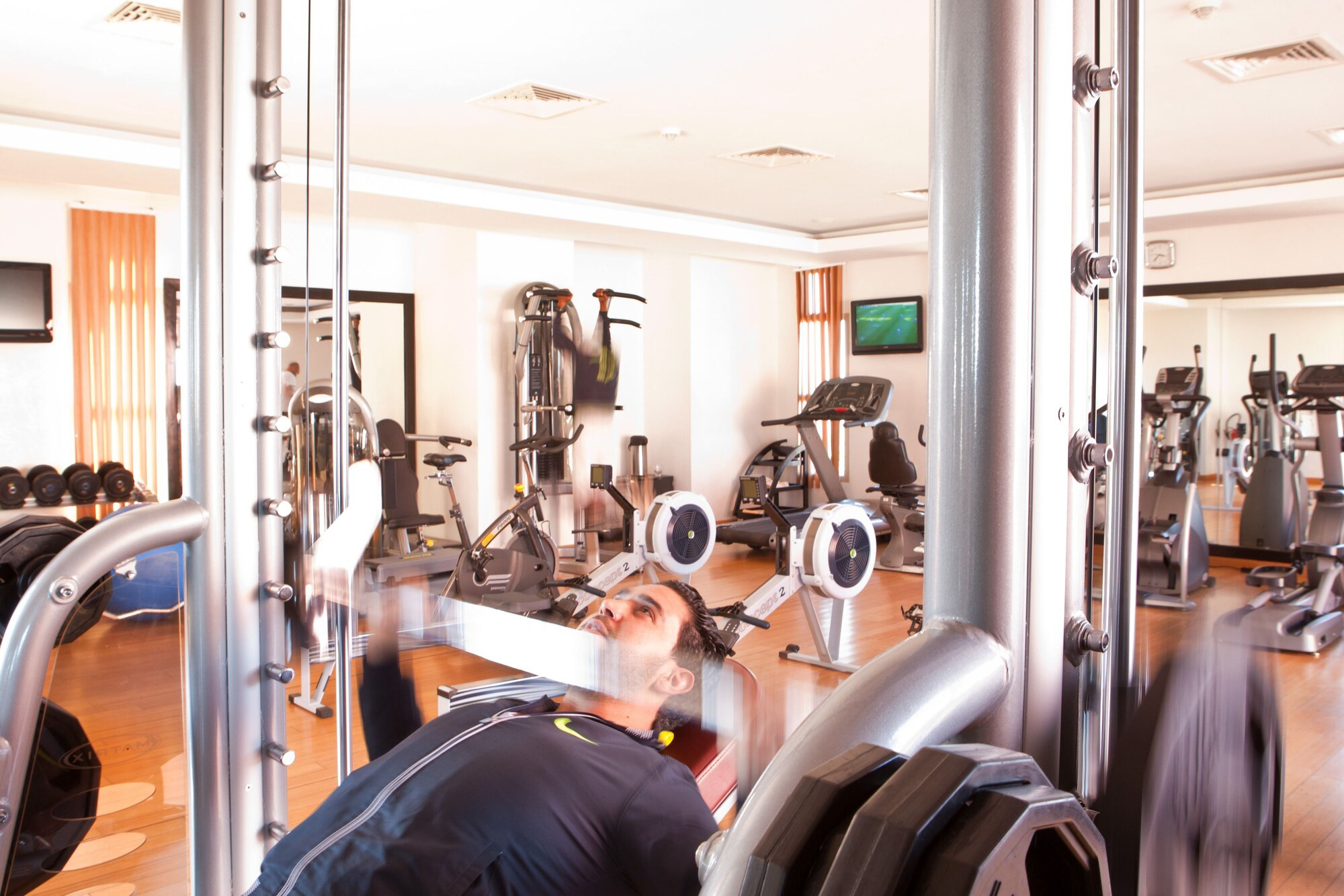 O bar da piscina é o lugar onde pode relaxar com uma cerveja gelada ou um cocktail exótico após absorver alguns raios de sol no terraço, onde pode encontrar cadeiras de tecido longas que oferecem conforto e luxo, enquanto a piscina interior oferece um ambiente diferente, com uma bonita iluminação de LED e muitas características na água.